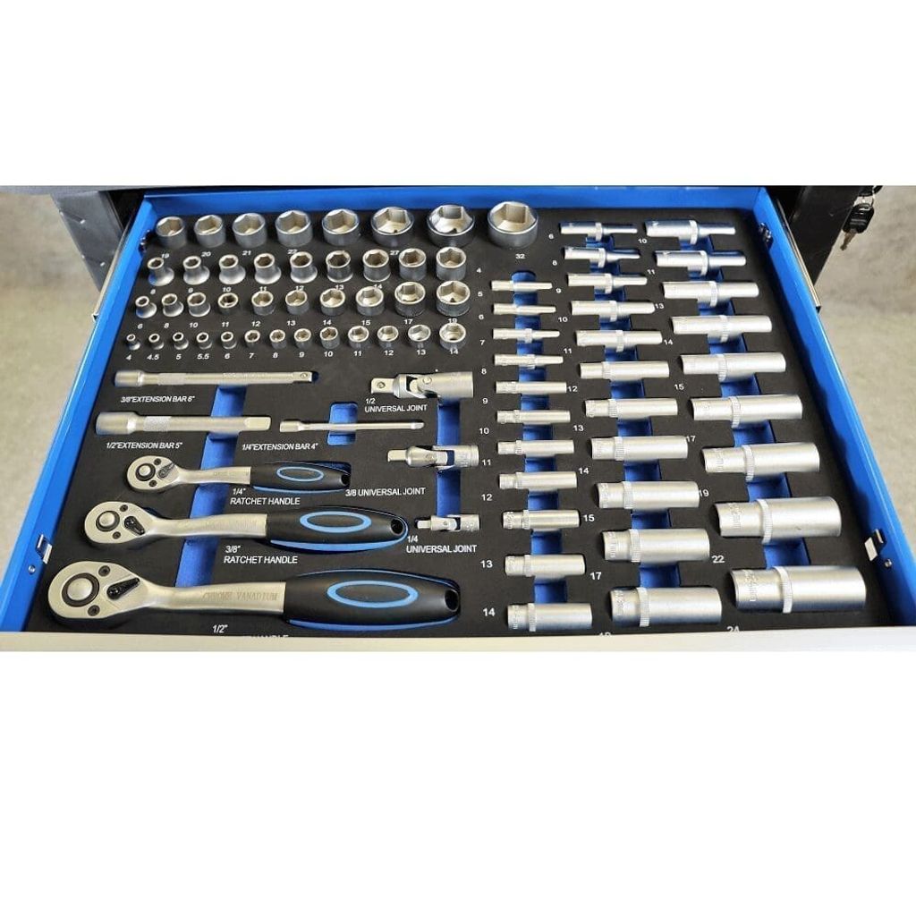 Denna verktygsvagn är en oumbärlig partner för yrkesmässiga mekaniker och entusiaster som kräver kvalitet och mångsidighet i sina verktyg. Med sin hållbara konstruktion och omfattande verktygsuppsättning är den ett måste för alla verkstäder eller garage. Beställ nu och ta dina projekt till nästa nivå med vår verktygsvagn.