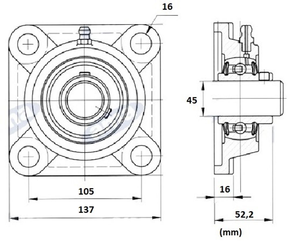 Flänslager | 45 mm
