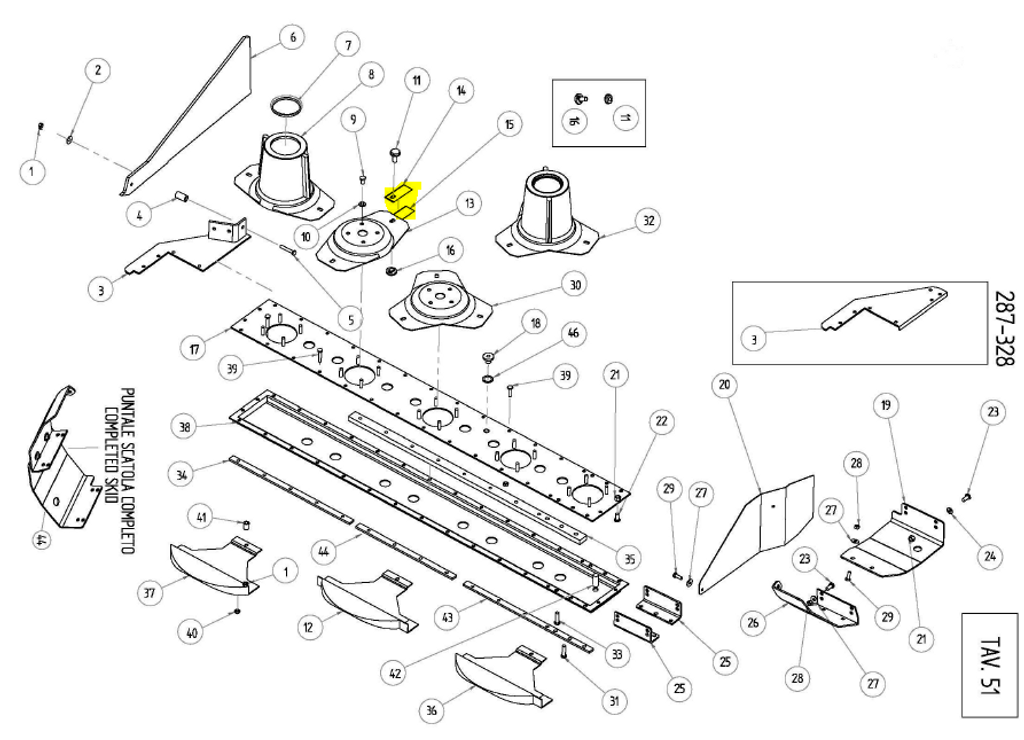 Den yttre rotorn har alltid 2 st. vänsterknivar, markerade med "32" i skissen nedan (högerknivarna är markerade med "33").