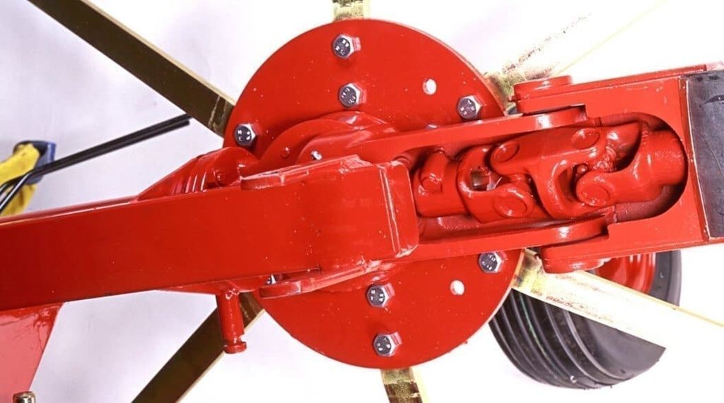 Hela vändaren är kardandriven, med vinkelväxlar som består av kronhjul och pinjong – allt väl skyddat för lång hållbarhet.