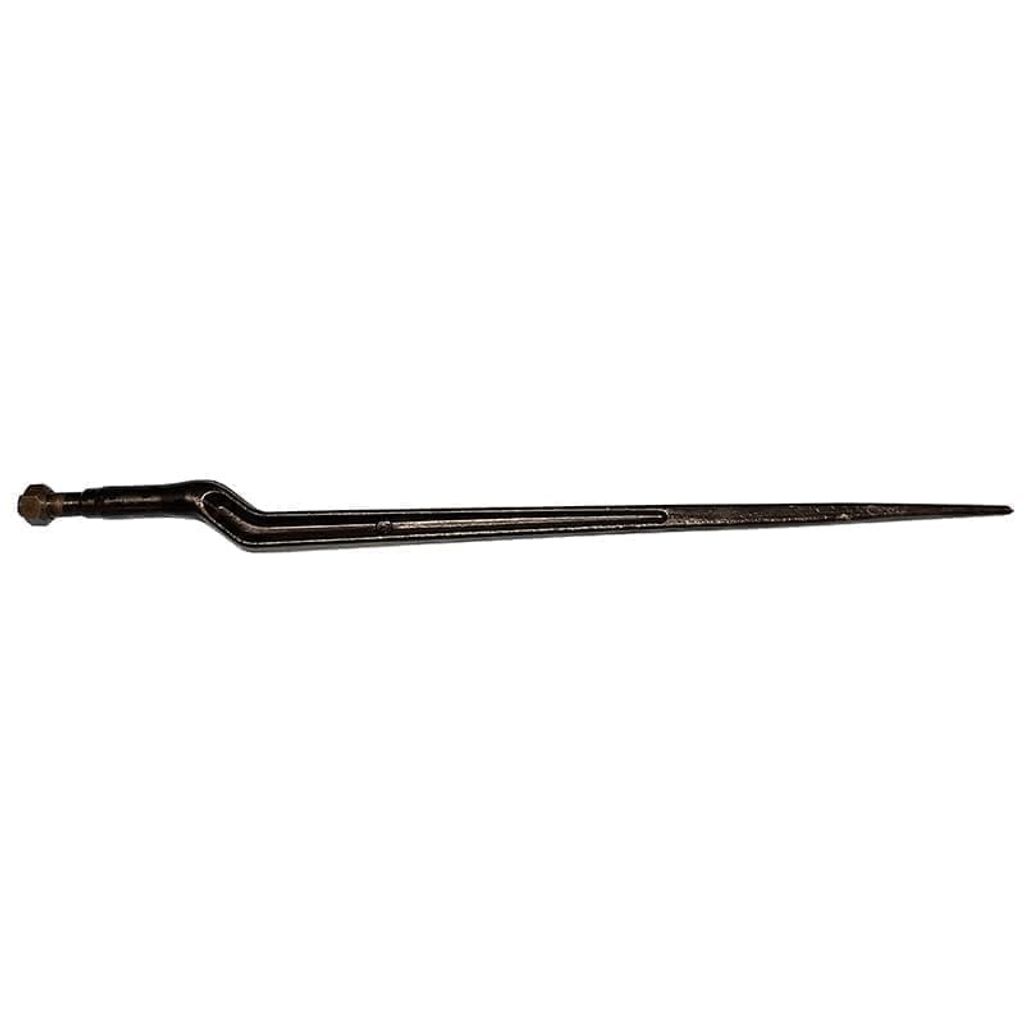 Detta spjut är det som sitter på KTS Gödselgrep 1,0 - 1,5 - 2,0 m samt i underkäken på KTS Krokodilgrip i samma arbetsbredder. Notera att om du har en gödselgrep som är tillverkad 2001 eller tidigare kan det vara så att spjutens konade del måste slipas ned något för att passa i gödselgrepsramens hylsor.