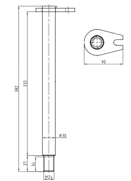 Detta är den längre av axlarna på KTS Risgrip 0,21 Hardox (GR21B). Se reservdelslista för referens!