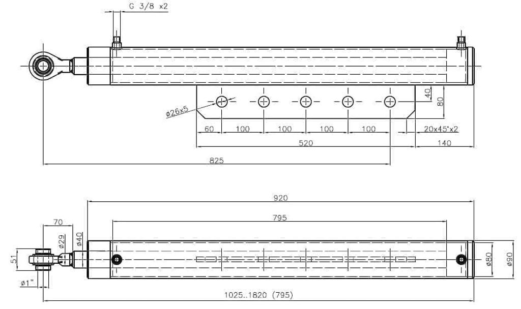 Hydraulcylinder passande 3-punktsmonterade KTS Sandspridare 1,3 m (KTS400S), 2,0 m (KTS800S & KTS2000S) och 2,4 m (KTS2400S).