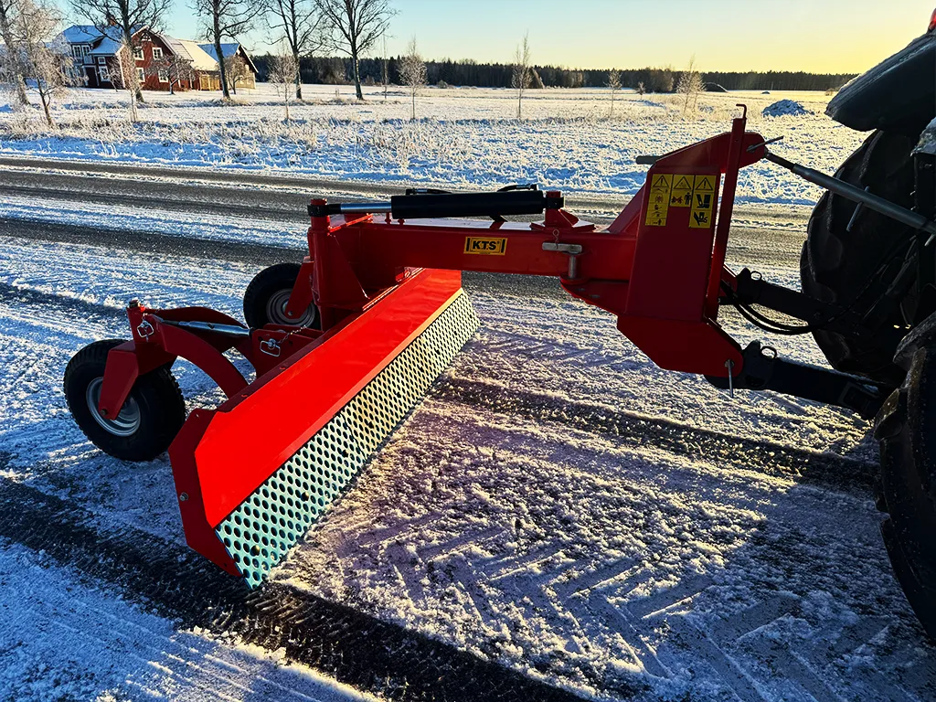 Modellen KTS1250S har en arbetsbredd på 2,50 m och höjd på 63 cm, levereras med en hydraulcylinder och slitstarka SharqFlat-stål i hög kvalitet från Olofsfors: ett Olofsfors SharqFlat™ 915x200x10 mm och två Olofsfors SharqFlat™ 792x200x10 mm. Uppgradera till två hydraulcylindrar för en svängbar bom och ökad flexibilitet.