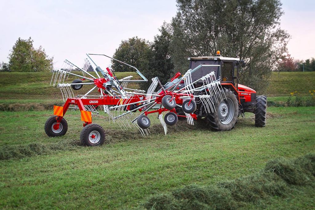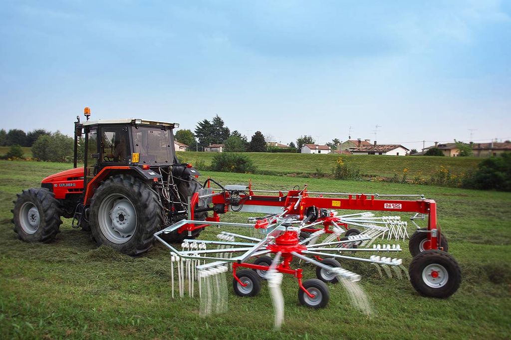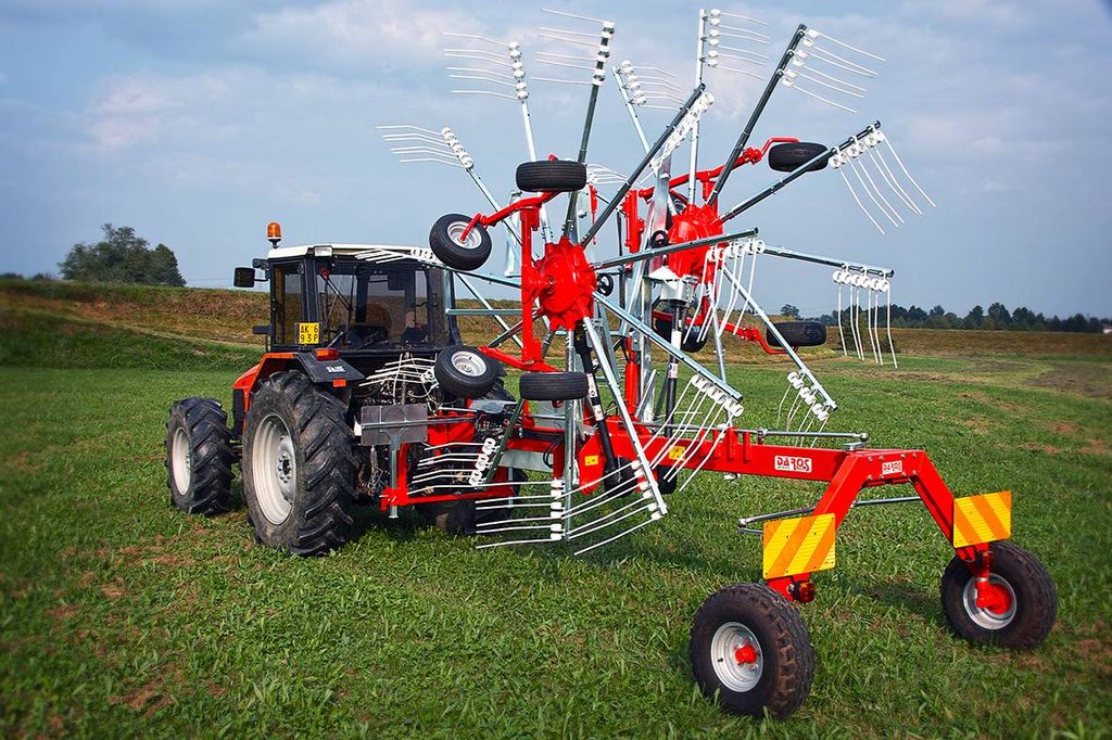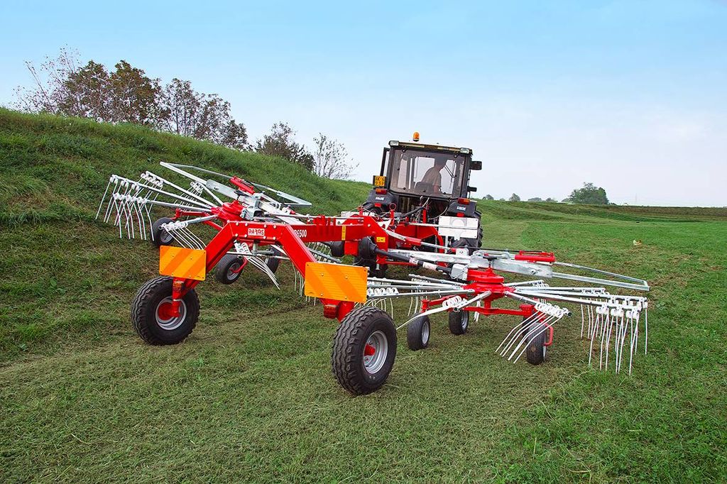 - Hydraulisk justering: Strängbredden justeras enkelt från hytten, och den hydrauliska uppfällningen gör både transport och förvaring smidigt.