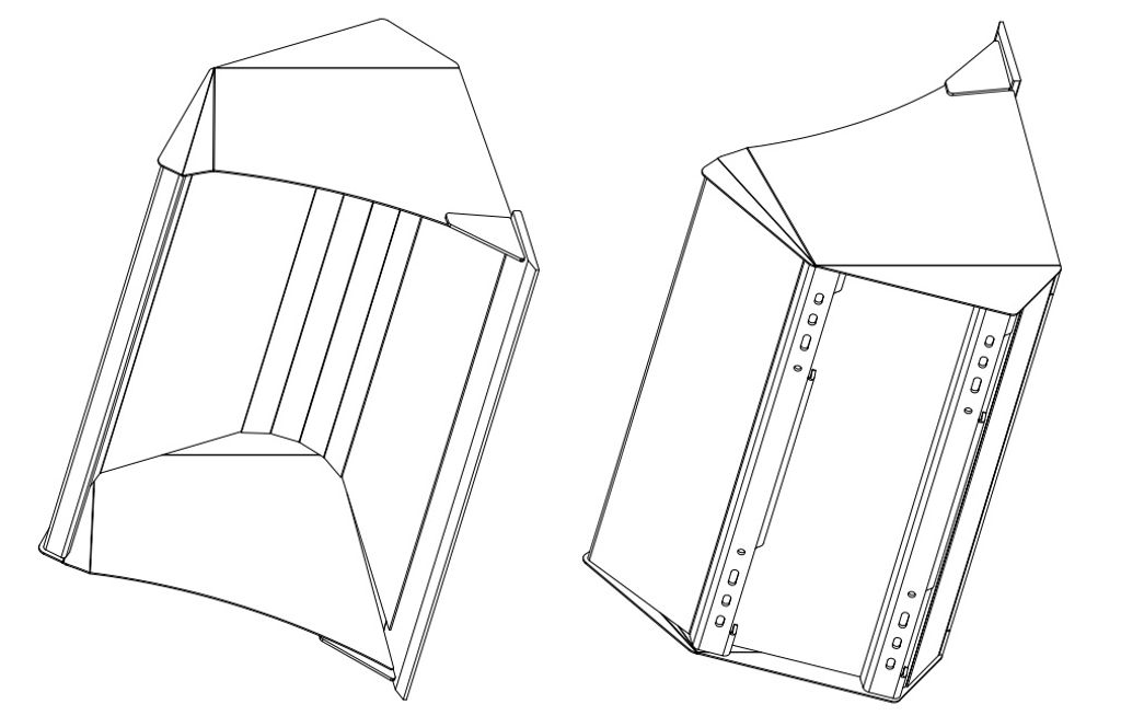 G: Prismapressning i gavlarnas översidor i kombination med kantförstyvning och hörnförstärkning stabiliserar skopans gavlar avsevärt.