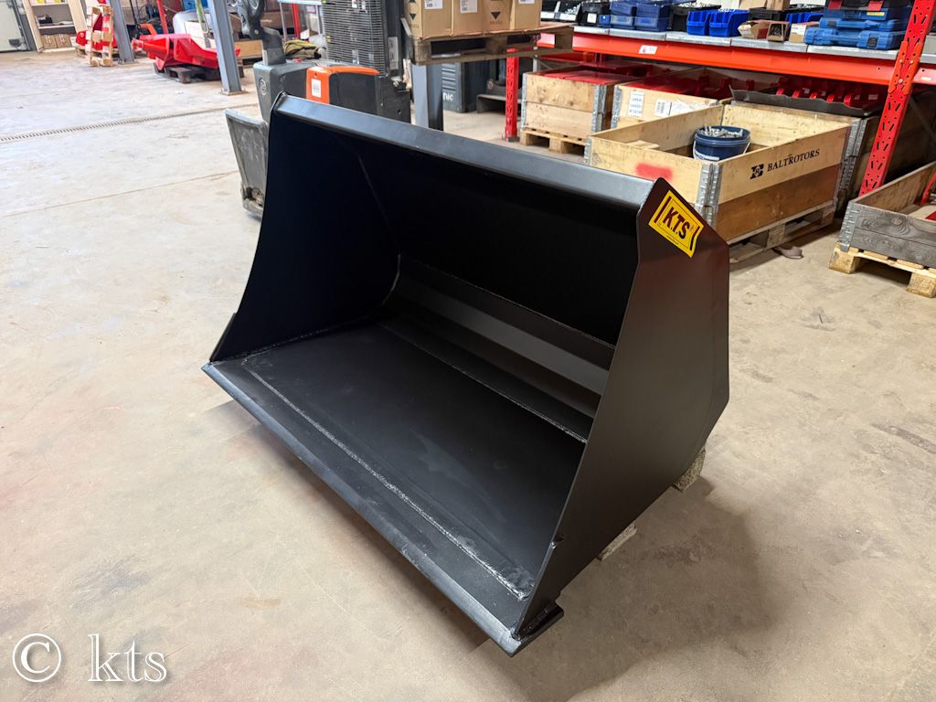 KTS Universalskopa med arbetsbredd 1,4 m och med vårt system med utbytbara bultbara fästen för att passa på många olika lastare. Här kan du köpa skopan utan fäste eller med antingen Trima-/SMS eller Euro. Kontakta oss för andra fästen än dessa alternativt, leta på och köp rätt fäste här: KTS bultbara lastarfästen.
