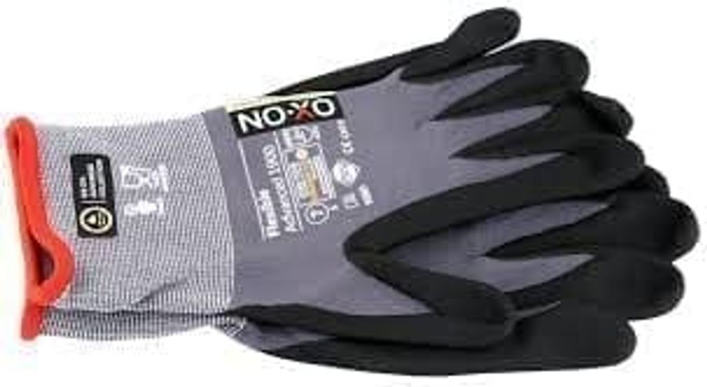 OX-ON Flexible Advanced 1900 är en allroundhandske i yppersta kvalitet. Den är godkänd för arbete med livsmedel och har dessutom kompletterats med touch så att du kan använda din mobiltelefon, platta och andra pekskärmar utan att ta av handsken. Handsken är extremt slitstark och sitter som gjuten på handen. Passformen är utsökt och ytterst bekväm att bära dag efter dag - oavsett vilket yrke du har. Den är stickad i nylon och elastan som ger en unik andningsaktivitet, samtidigt som smidigheten och komforten är oslagbar. Handflatan och fingrarna är belagda med ett nitrilskum i specialkvalitet som gör att du har kvar en precis fingerkänsla och ett perfekt och säkert grepp.