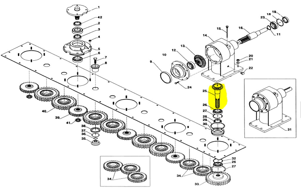 Benämning i reservdelslista: Pinjong Z16 / Axel med drev Z16.