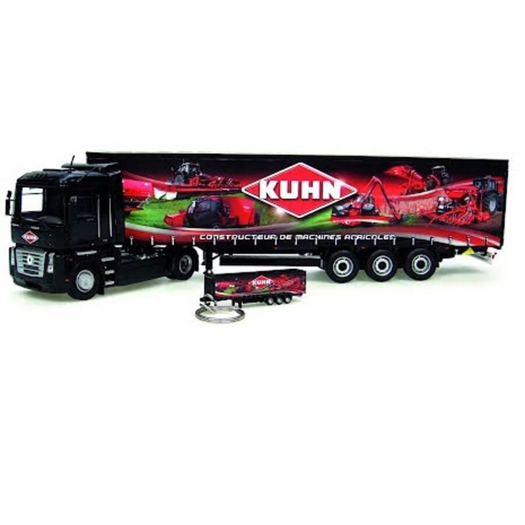Renault Magnum Krone trailer "Kuhn" + keyring Kuhn. Modell i skala 1:50 från Universal Hobbies.