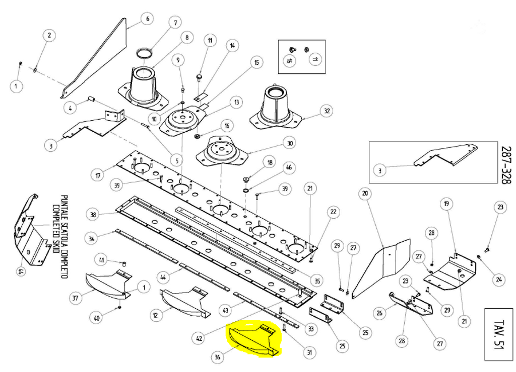 Släpsko 6251436 passande KTS Rotorslåttermaskin D4L + D6L + D8L, d.v.s. 1,67 m + 2,40 m + 3,20 m + KTS Rotorslåtterkross