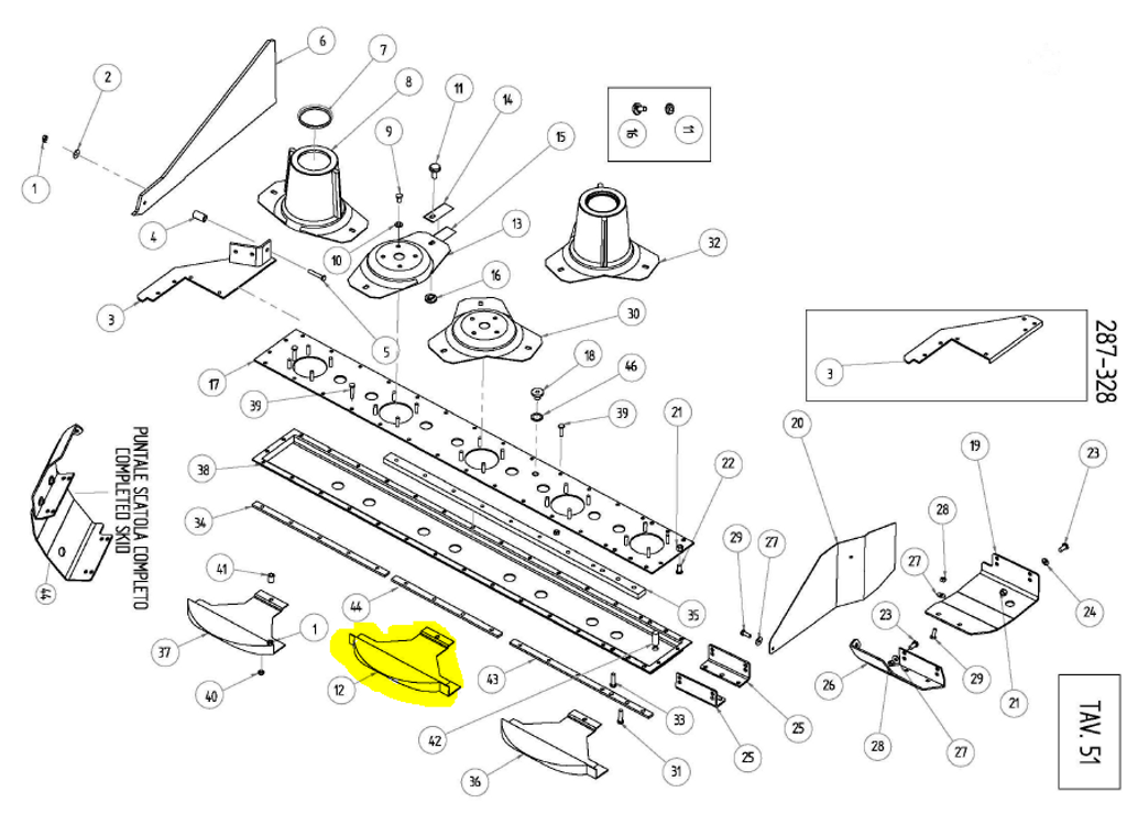Släpsko 6251536 passande KTS Rotorslåttermaskin D5L + D7L, d.v.s. 2,05 m + 2,80 m + KTS Rotorslåtterkross.