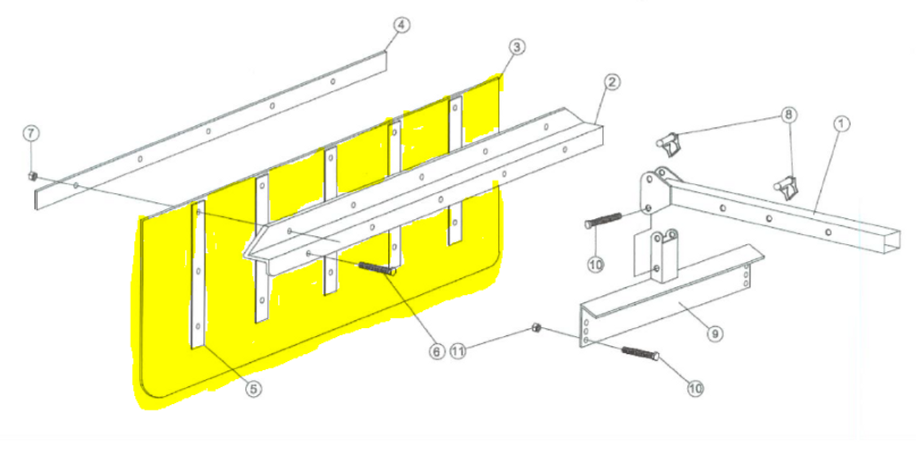 Strängskärm (leverantörens benämning: hay stopper) i gult slitstarkt plastmaterial.