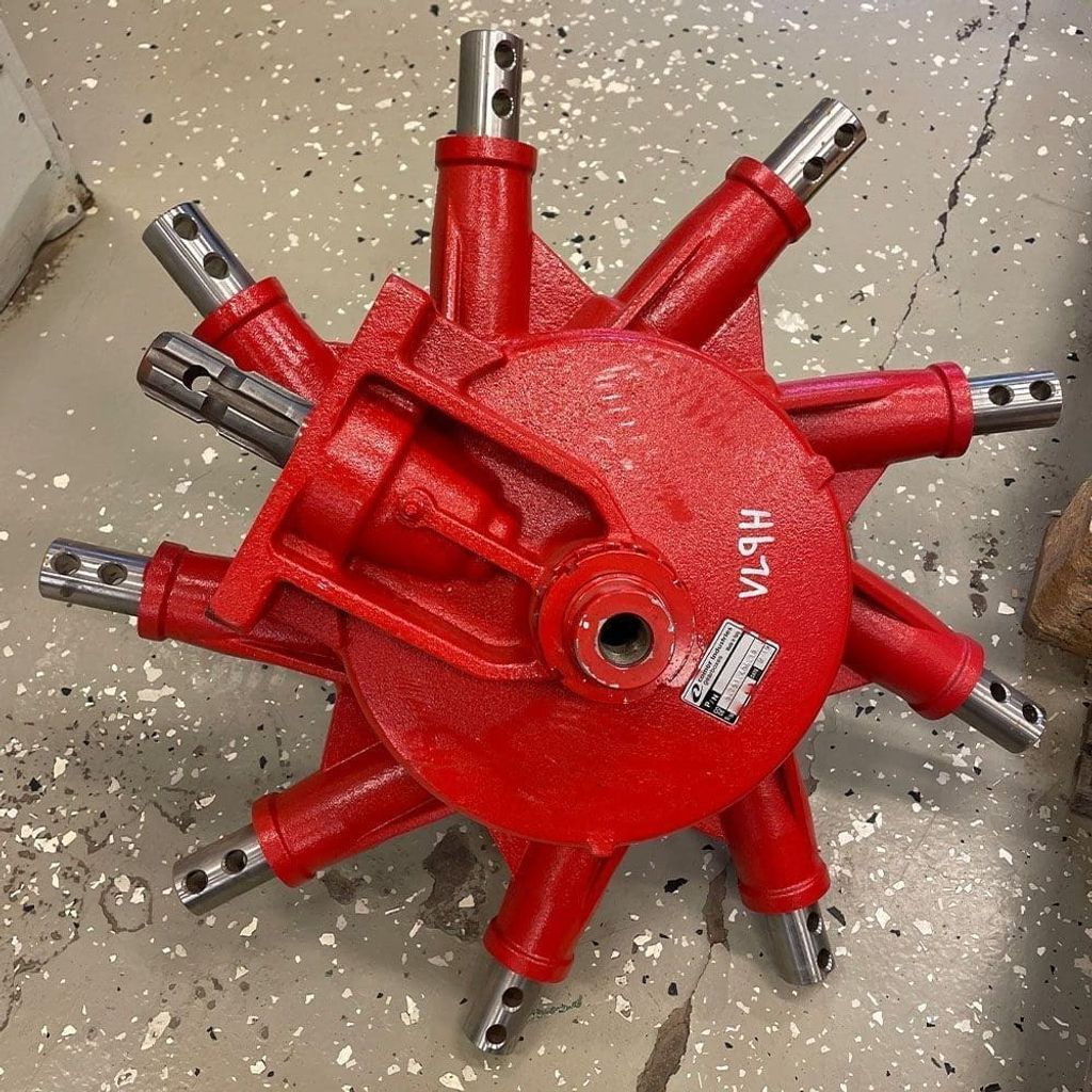 Växellåda till K.T.S dubbelrotorig strängläggare med 9 armar. För maskinens högersida (i körriktningen).